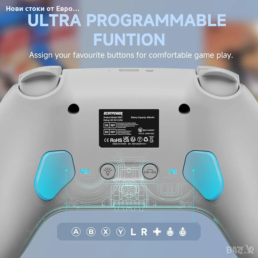 【RGB LED светлини】Контролерът ECHTPower е проектиран с готини светлинни ефекти от 9 цвята и 4 различни режима, можете да персонализирате вашия контролер според вашите предпочитания. RGB светлинните ефекти носят уникално гейминг изживяване, превръщайки всяка игра в истинско визуално парти.