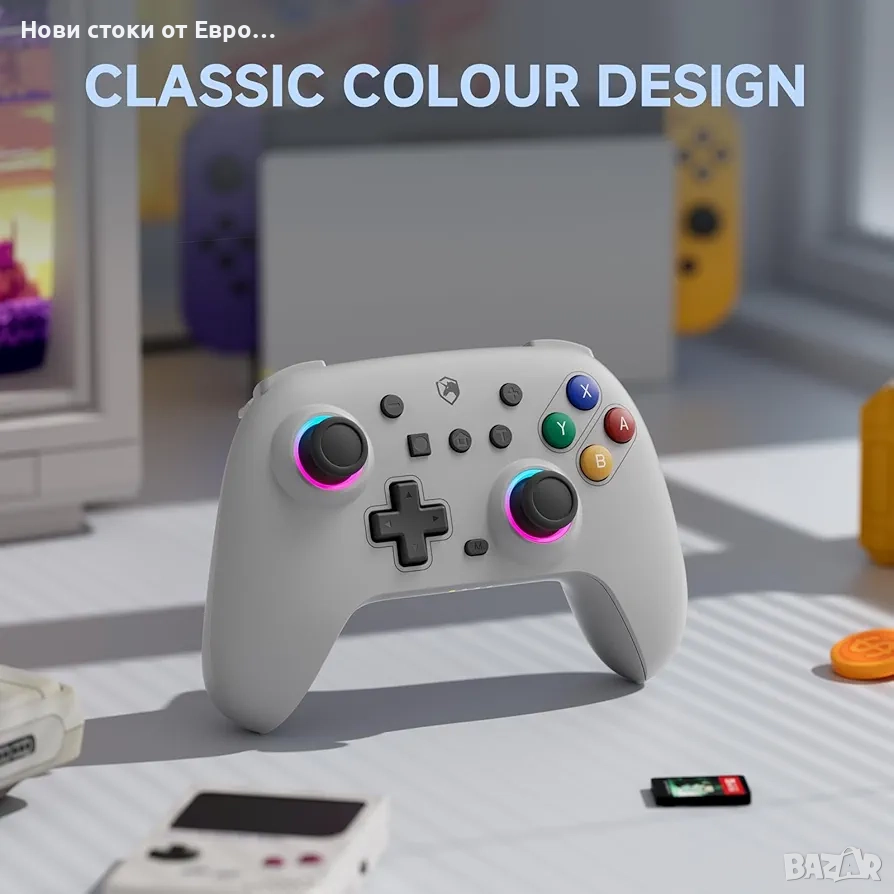Дизайн с ретро цветове】Безжичният контролер ECHTPower предлага перфектна съвместимост със Switch, PC, Android и iOS системи в безжичен режим, което ви позволява да играете свободно на различни устройства без притеснения. Сивият контролер Switch използва класически цветен дизайн, перфектно съчетаващ ретро чар с модерни функции, за да осигури върховно гейминг изживяване за геймърите.