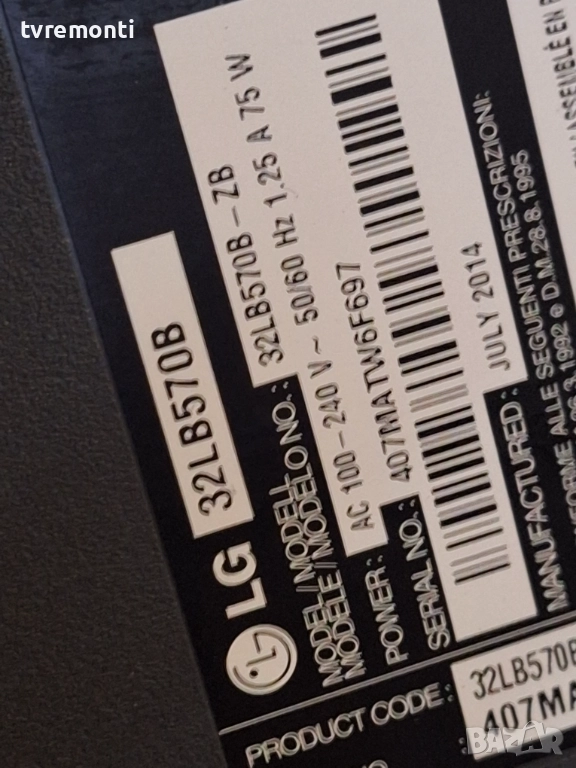 Main Board EAX65610904(1.0) ,за 32-инчов телевизор LG Модел 32LB570B, с дисплейHC320DXN-VHHS1-51XX, Платката е използвана, но гарантирано работеща, демонтирана от телевизор със счупен дисплей. Тествана е от нашия техник.