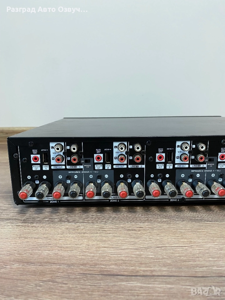 Усилвателя е донесен от чужбина, тестван е и работи без проблеми на 4 те си зони и на 8 те си канала.