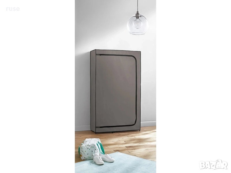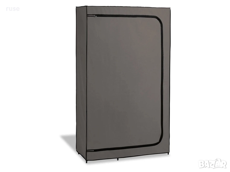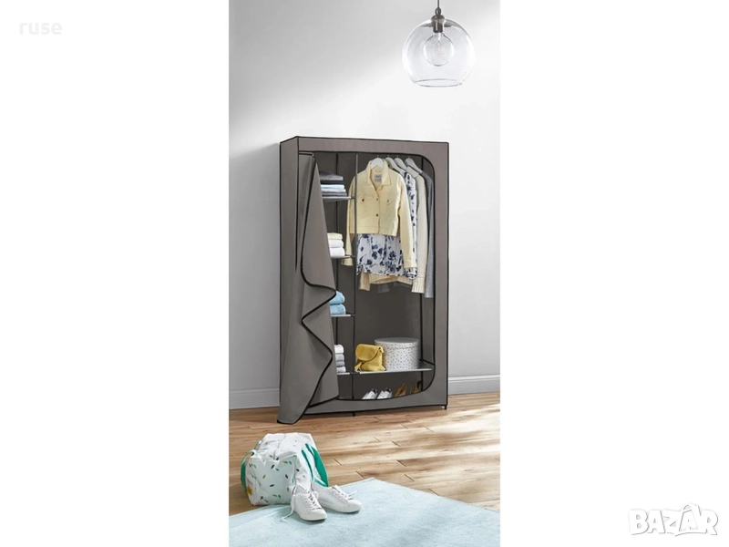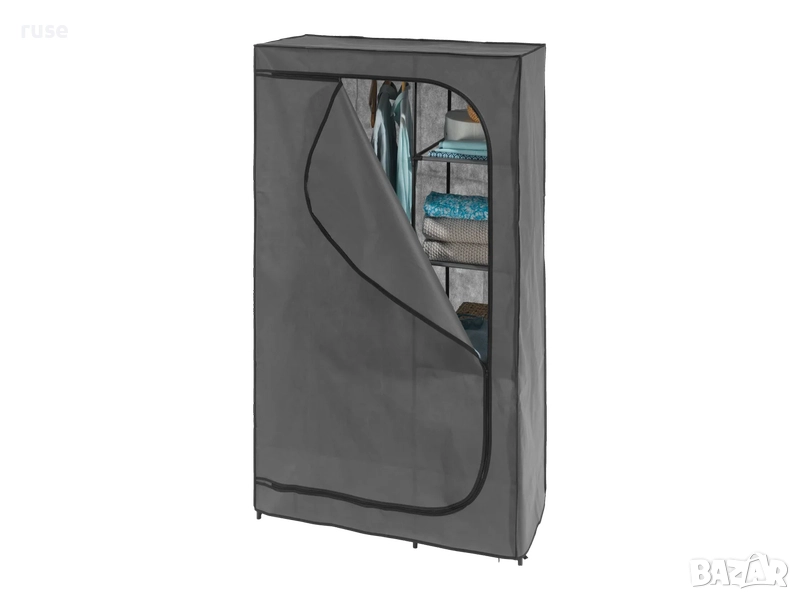 НОВ! Текстилен гардероб с лост и рафтове 174х100х46см сив