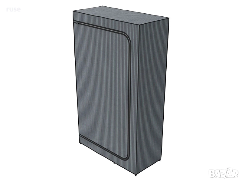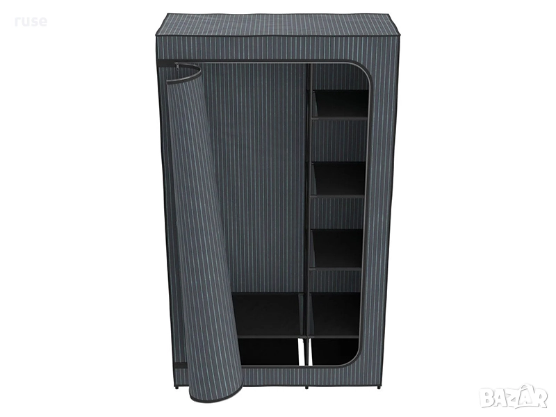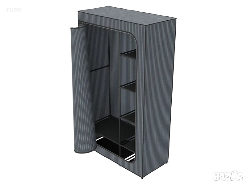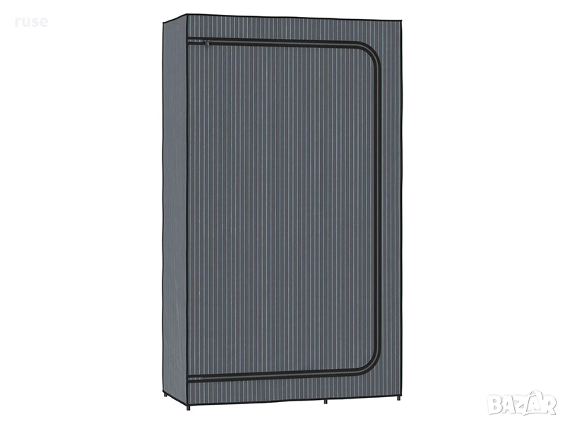 НОВ! Текстилен гардероб с лост и рафтове 174х100х46см сив-райе