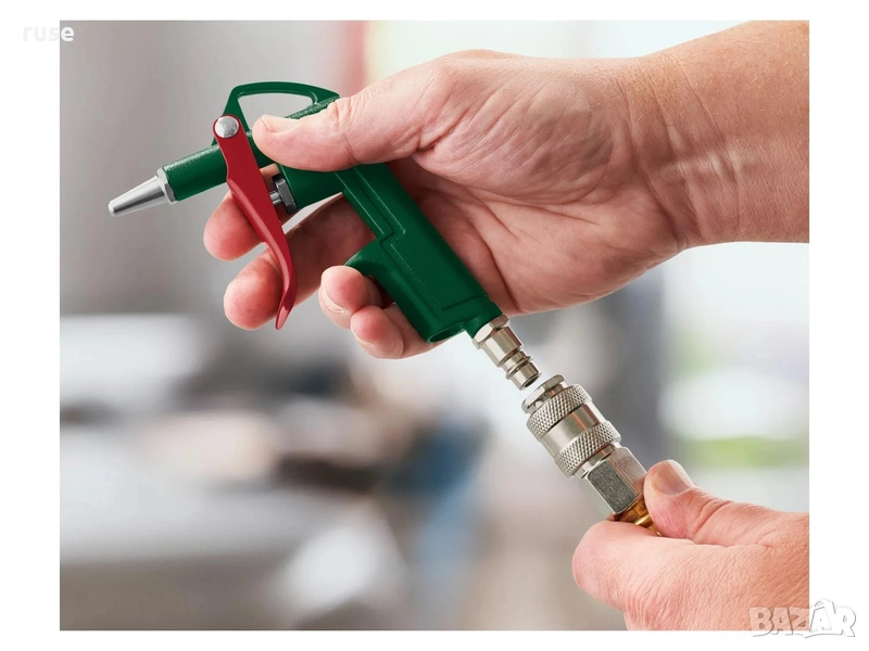 - Маркуч за сгъстен въздух с бърза връзка (¼″) и пистолет за обдухване