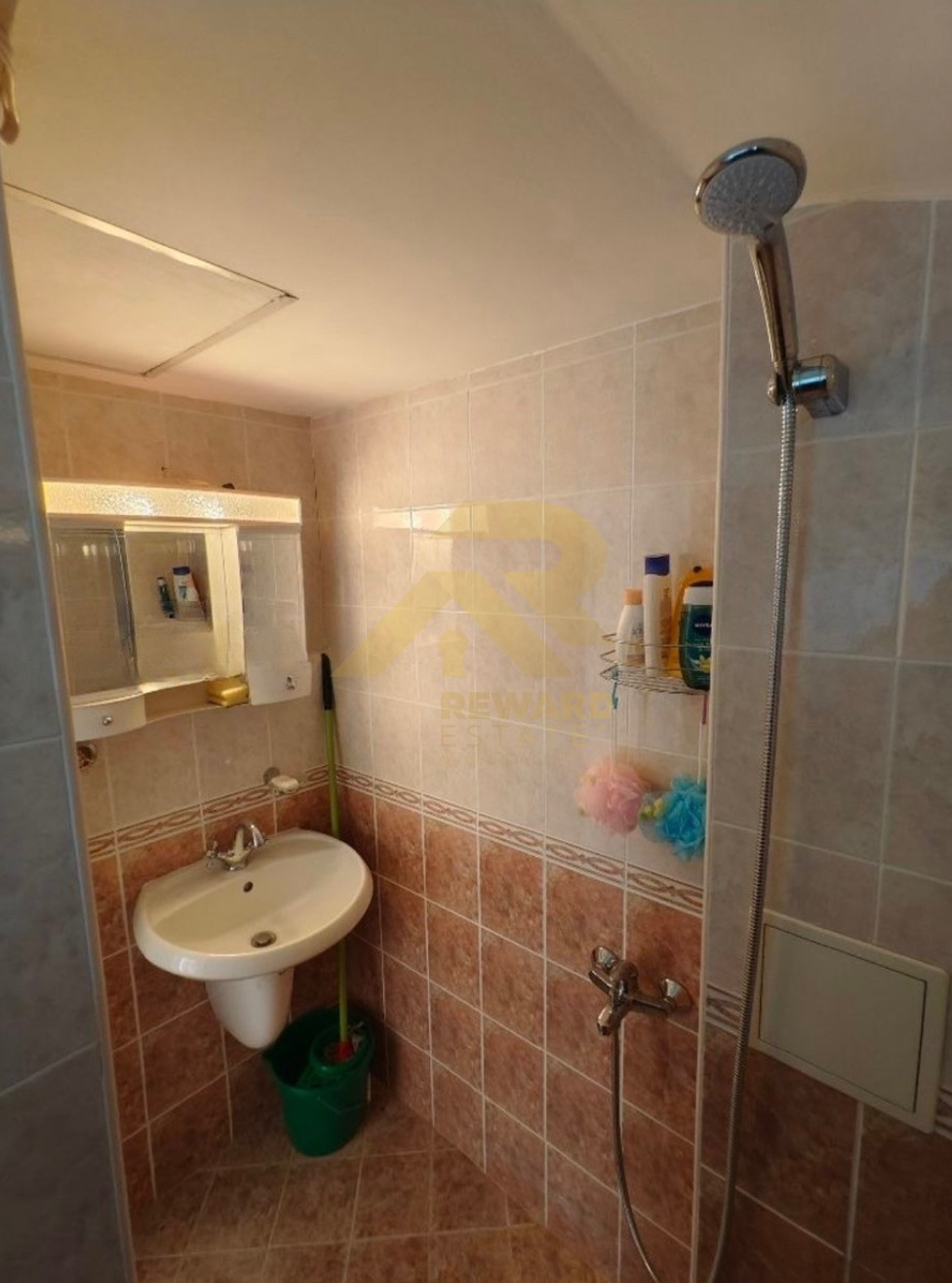 На първия етаж има блиндирана входна врата, коридор с теракота и латекс, баня с тоалетна и вана, мокро помещение с хидрофор, склад и просторна кухня с механа, настлана с дървено дюшеме. Вторият етаж предлага малко фоайе, просторна дневна с втори кухненски бокс и широка тераса, като помещенията са завършени с дървено дюшеме и тапети. Третият етаж включва две спални, коридор, баня с тоалетна и панорамна тераса, както и таванско помещение с бойлер.