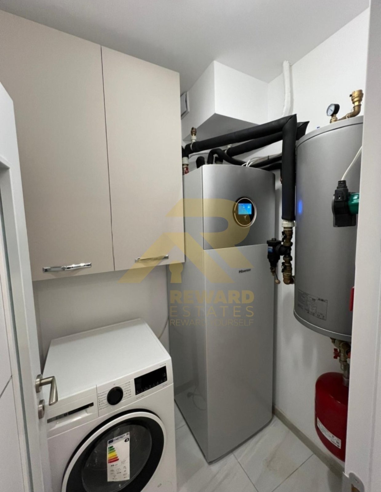 Апартаментът е с площ 110 кв.м, разположен на 4-ти етаж. Предлага се напълно обзаведен с чисто нови мебели и висококачествени електроуреди. Отличава се с модерен интериор, светли помещения и усещане за комфорт и стил. Отоплението е с термопомпа.