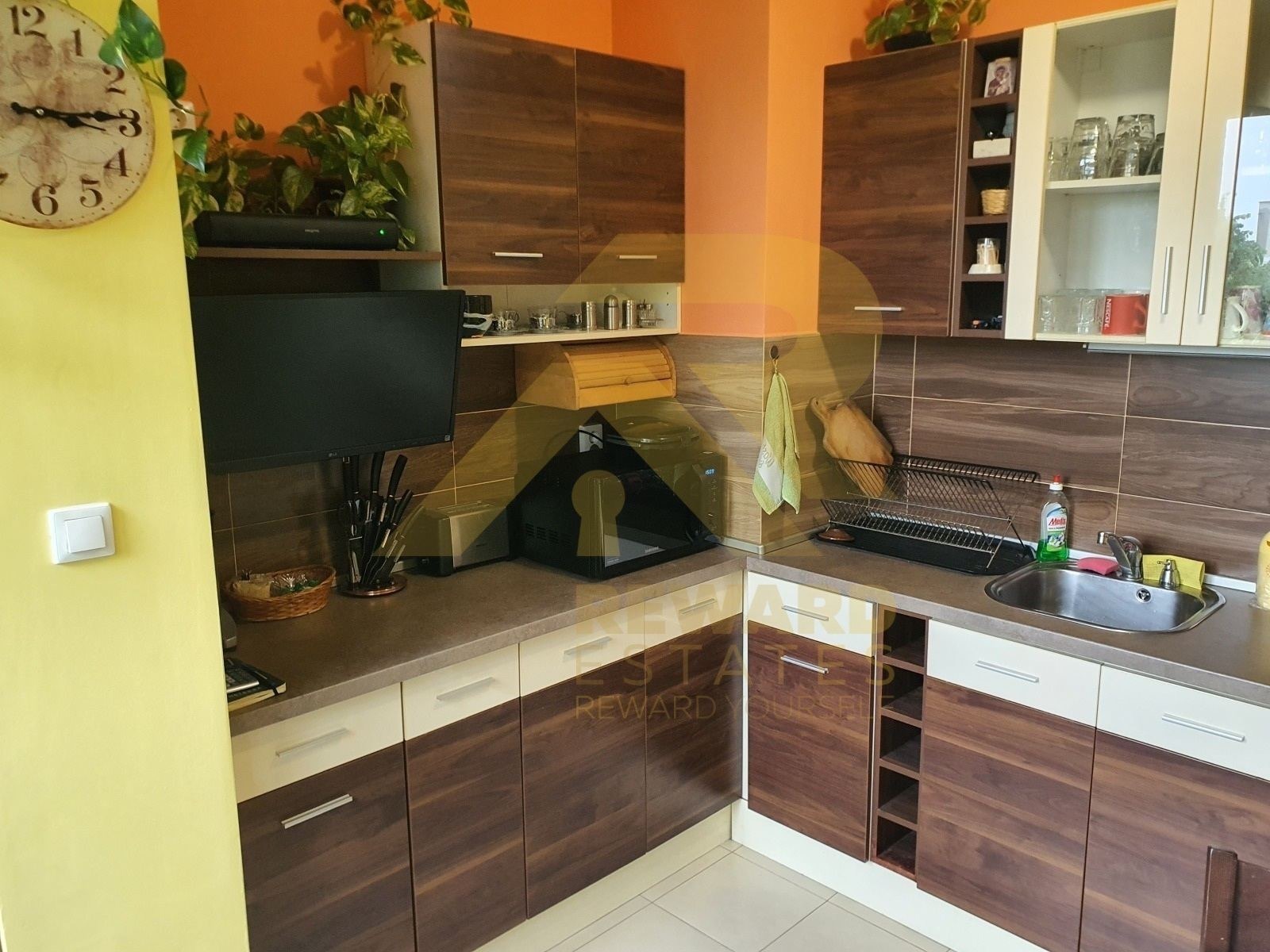 Разпределението на имота е: коридор, всекидневна, кухня, спалня, баня с тоалетна, две мокри помещения и тераса.