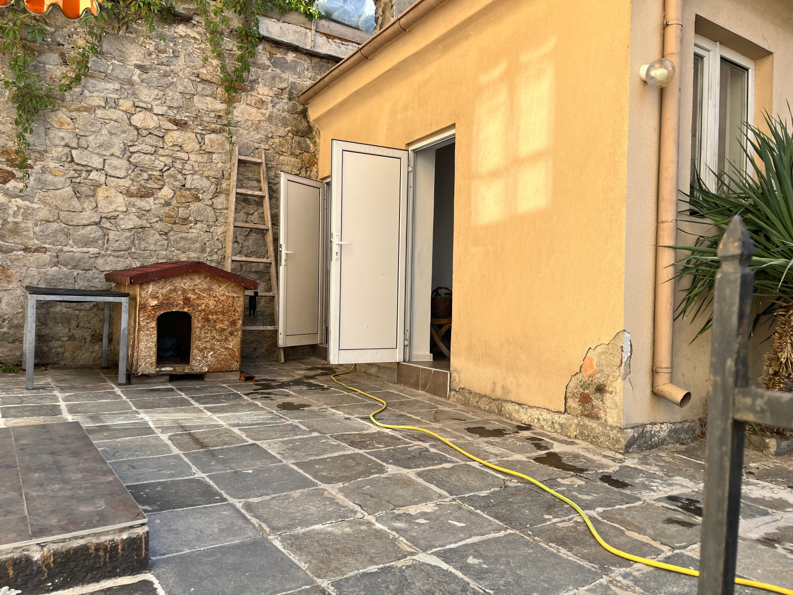 В подножието на Сахат тепе. Снимките са в необзаведено състояние, но при желание на наемателя, ще бъде обзаведен. Аристократичен етаж от къща до лятно кино 'Орфей' със застроена площ 105кв.м и помощна постройка от 15кв.м. Етажът /на бетонна плоча/ се състои от коридор, три стаи, кухня, баня с тоалетна и килер. Стаите, коридорът и килерът са на естествен паркет, кухнята и банята с тоалетна са на теракота и фаянс, всички със светла височина 3.60м. Изложение юг-запад, изключително светъл и топъл етаж. В две от стаите има подови климатици Дайкин. Кухнята е с италианско обзавеждане. Пристройката се състои от стая /на теракота/ с камина и мивка и баня с тоалетна на теракота и фаянс. Избата е 53кв.м, а собственият двор е 60кв.м. Преди да отидете на друга обява, може да погледнете снимките. Агенцията разполага с ключ.