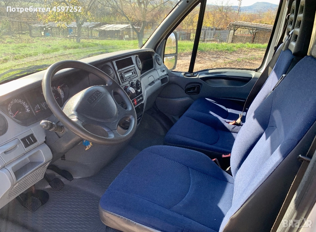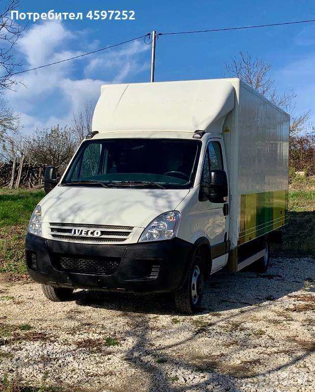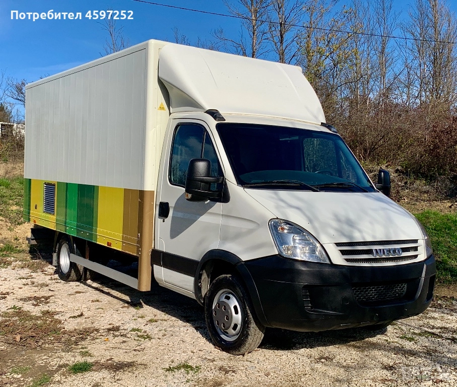 Iveco Daily 3. 0 40c18 180к. с 6 степенна трансмисия - НОВ ВНОС - 2 ключа - ПЪЛНА СЕРВИЗНА ИСТОРИЯ - доказуем пробег - шаси номерът при интерес - фургон с размери: 4. 50м. ДЪЛЖИНА/2. 20м. ВИСОЧИНА/2. 10м. ШИРОЧИНА - 4. 10м. междуосие - 6 броя НОВИ ЗИМНИ ГУМИ UNIROYAL DOT1323 - седалка на килограми - подгряване на седалките - темпомат - ел. огледала - ел. стъкла - теглич със стъпенка - осветление във фургона + ключалка. Ивекото е с ДВОЙНИ ГУМИ, до 3. 5тона, управлява се с Б категория и винетка за лек автомобил. Запазен товарен отсег, оригинална боя на кабина, без РЪЖДИ по шаси и подкалници, отлично техническо състояние - докаран на собствен ход, салон в безупречен вид.