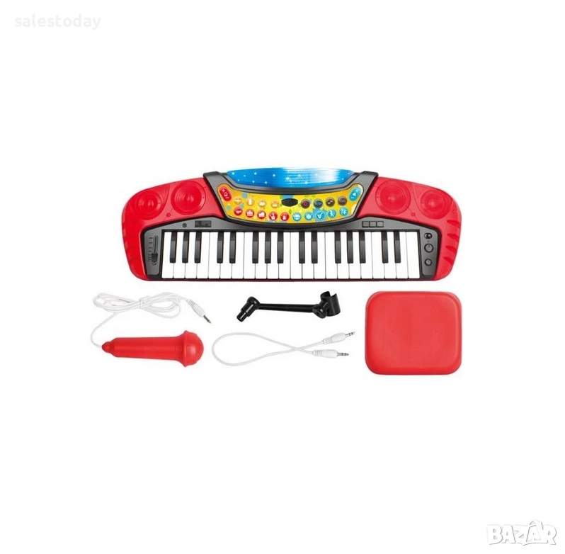 пиано играчка със столче и микрофон, 37 клавиша и светлина. Разполага с