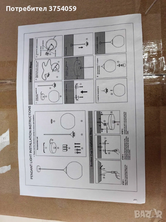 Фасунга: стандартна E27 (съвместима с LED/енергоспестяващи/халогенни крушки; мощността и цветът зависят от избраната крушка);