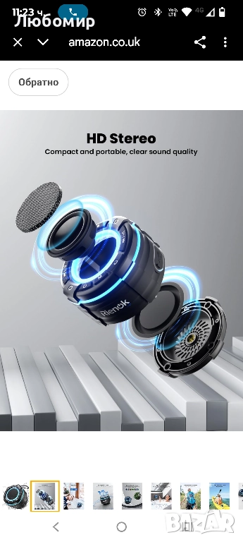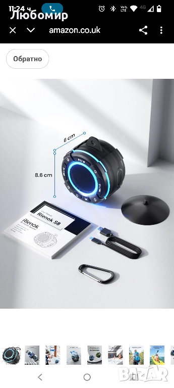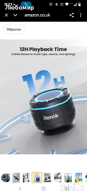 RIENOK Душ високоговорител Bluetooth FM радио IPX7 Водоустойчив 12H време за възпроизвеждане