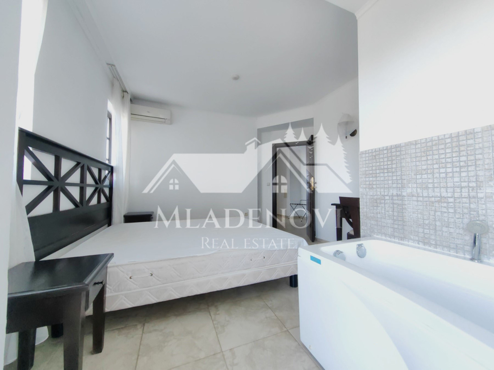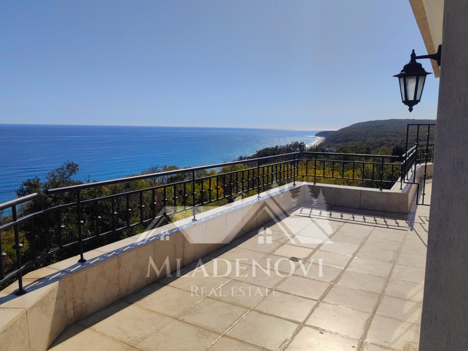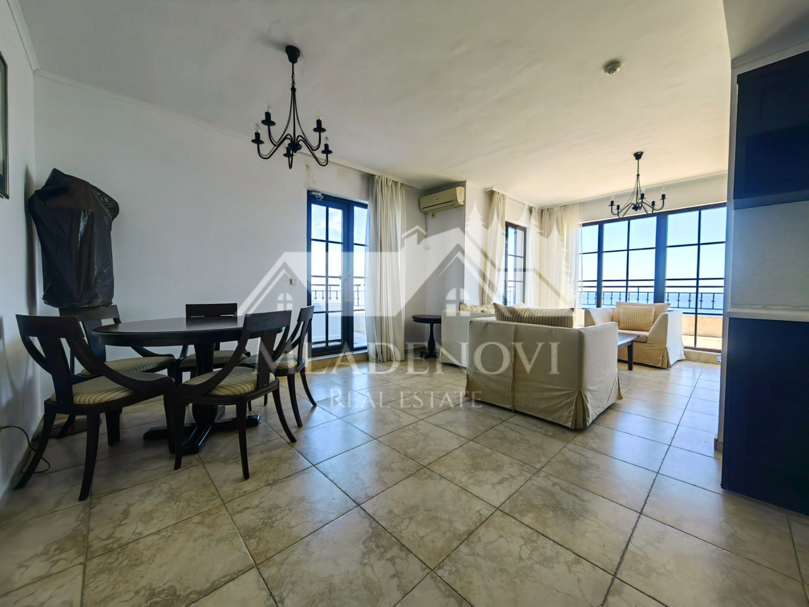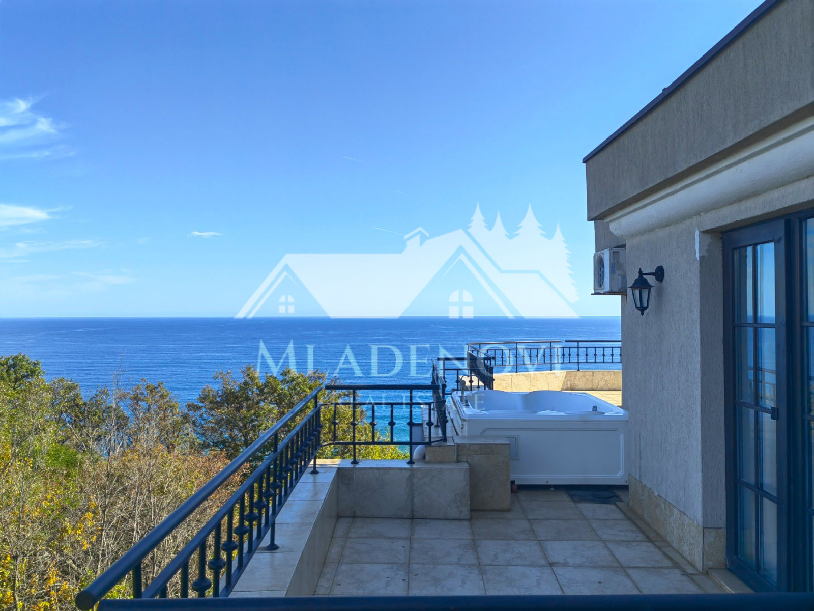 Жилището се състои от всекидневна с трапезария и кухненски кът, едно общо просторно помещение с камина и излаз на голяма открита тераса, три спални, едната, от които със собствен санитарен възел и джакузи, втора голяма баня с тоалетна и още две открити тераси. Жилището е изключително светло и слънчево, с три изложения и неповторима гледка. Продава се с наличното обзавеждане и оборудване. Таксата поддръжка е 12,90 Евро на кв.м. годишно.