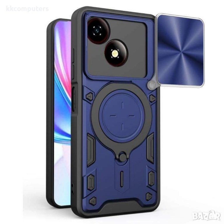 Удароустойчив магнитен калъф за ZTE Blade A35e 5G- Слайд капак за камерата, 360° Стойка, вкл. Протек → Обява 52521510