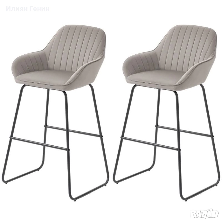 бар стола HOMCOM, Бар столове с платнено покритие и дунапренена подплата, Тапицирани столове с метални крака, Сив - 220.00лв.