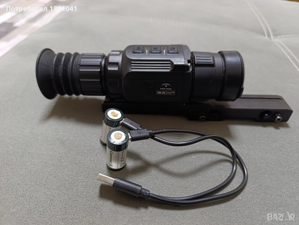 Продавам термо прицел night pearl fox 35 произведен в Чехия ,който е използван около 15-20 пъти за лов на хищници. Гаранцията на прибора е до ноември 2026 година. В комплекта са включени два чифта презареждащи се батерии ,които дават автономност до 6 часа работа,а също така има и вход за външна батерия! Wi fi приложение за наблюдение и запис на аудио през мобилно устройство (телефон таблет) с android . Уреда е като нов изключително лек и лесен за употреба. Разполага с бърз монтаж за weaver база , който е към оригиналния комплект.