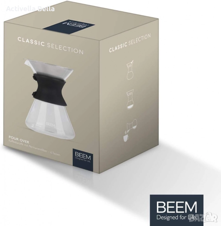 Стъклена кана с метален филтър BEEM Classic Selection Pour Over (до 6 чаши) → Обява 52522149