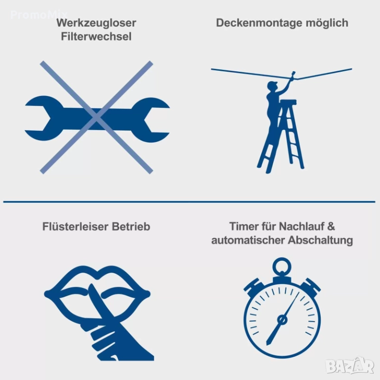 - Дебит на въздуха при различните скорости: 600 м³/ч; 675 м³/ч и 740 м³/ч