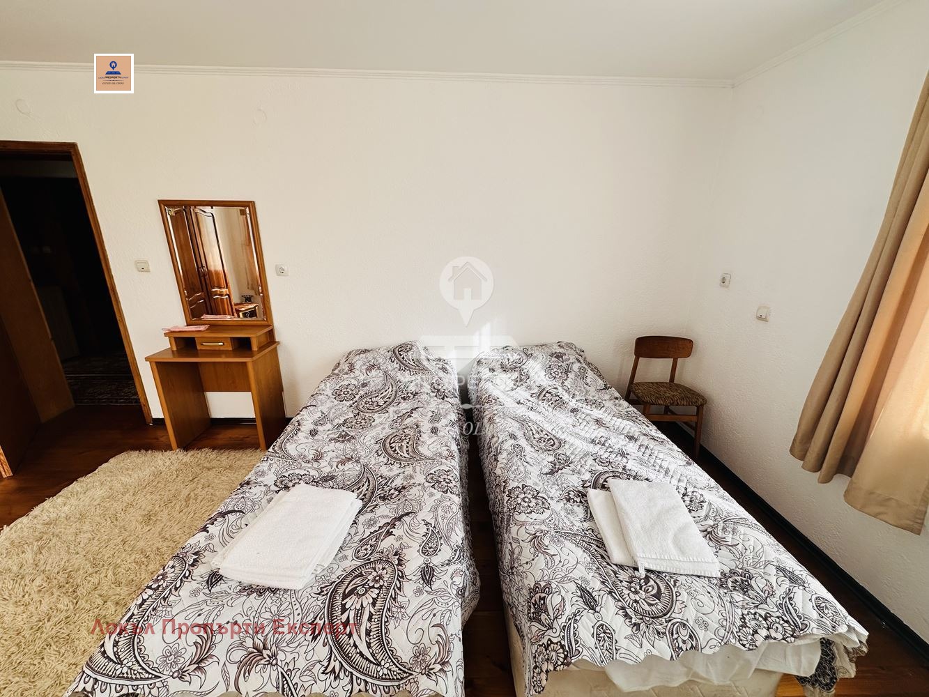 Спалните са обзаведени с двойни легла, двойни гардероби и нощни шкафчета. Също така къщата разполага с голям двор и вътрешно паркомясто.