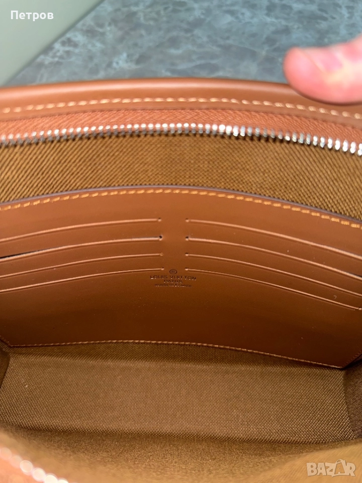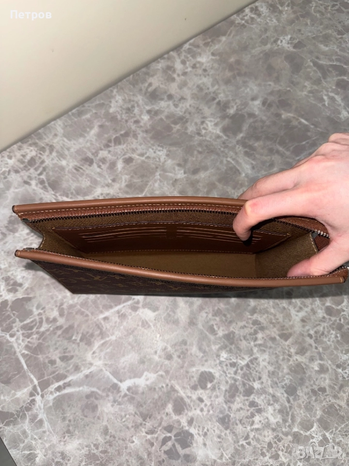 Материята е известният LV Monogram Canvas – устойчив, луксозен и непроменяем във времето. Ръбовете, кожените елементи и ципът са в чудесно състояние без протривания или дефекти. Вътрешността е много запазена - без петна и без следи от употреба - носил съм я броени пъти. Има удобни слотове за карти/документи, което я прави перфектна както за ежедневна употреба, така и за пътуване.