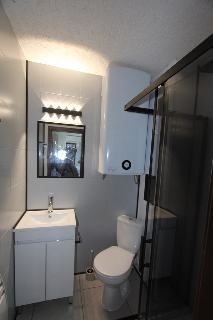 Банята е напълно оборудвана с душ кабина и бойлер.