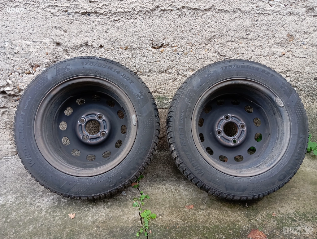 продавам зимни гуми KUMHO 175x65x14 DOT 2021 дълбочина на протектора 6,5-7 мм. Карани са два сезона само през зимата. Перфектни. Железни джанти от Форд. Централен отвор - 63,3 - 4x108mm. Намират се в гр.Лясковец.