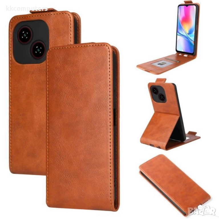 Този вертикален кожен калъф съчетава модерен дизайн с практически функции като магнитно затваряне, вграден холдер и удобен слот за карта, където можете да съхранявате банкова карта или лична карта, предлагайки пълна защита и комфорт във всеки един момент.