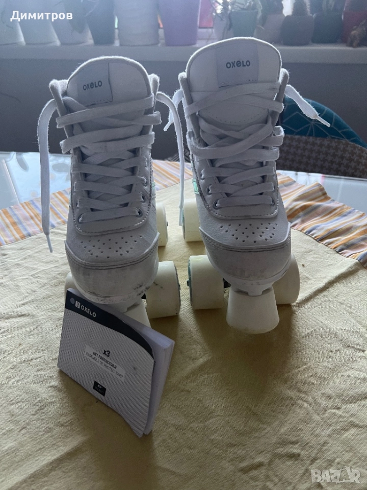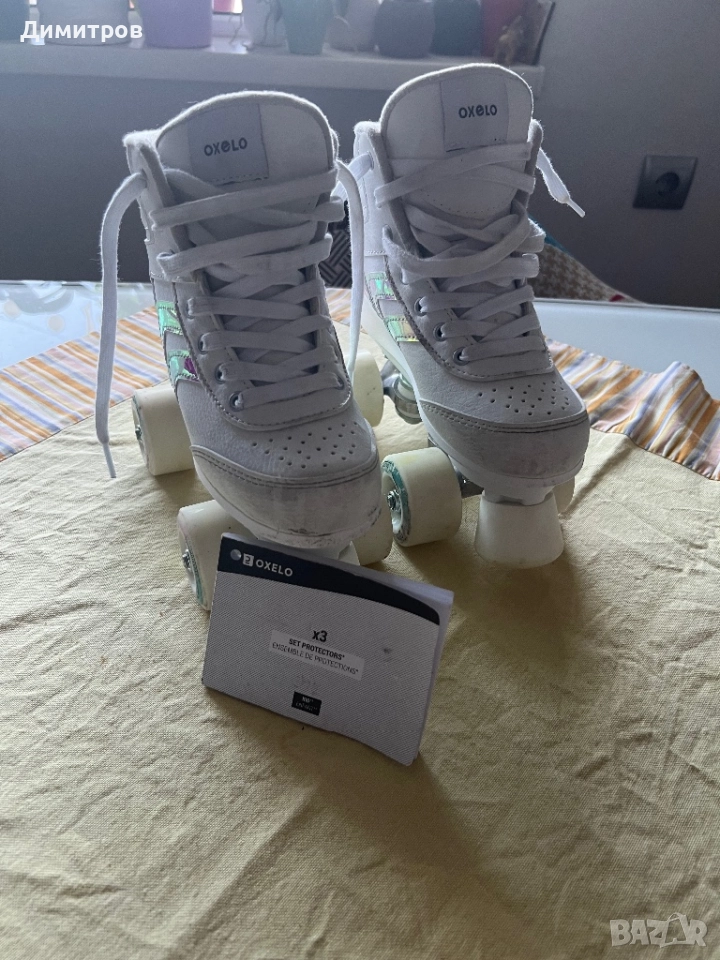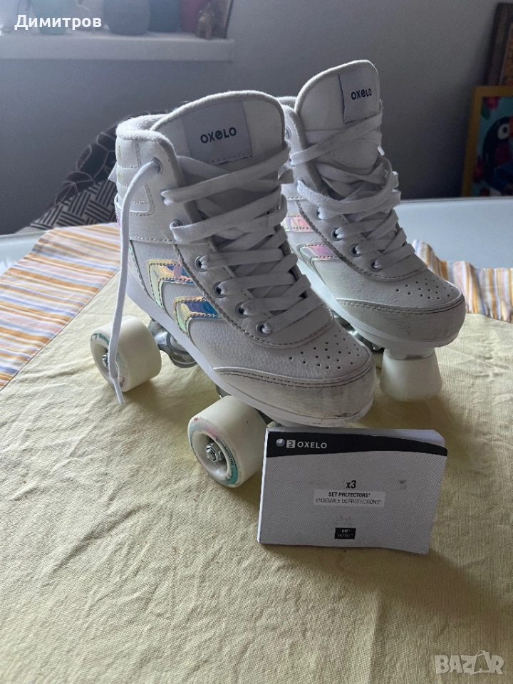Комплект детски ролкови кънки oxelo с пълен сет наколенки, лакътници и за длани. Номер eu 33-дължина на стелката 21см. Като нови са. Купени ся за 145лв.