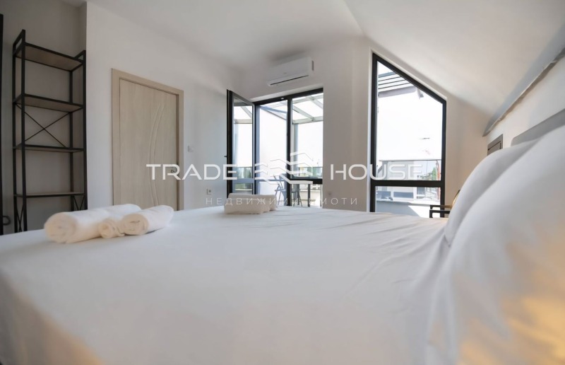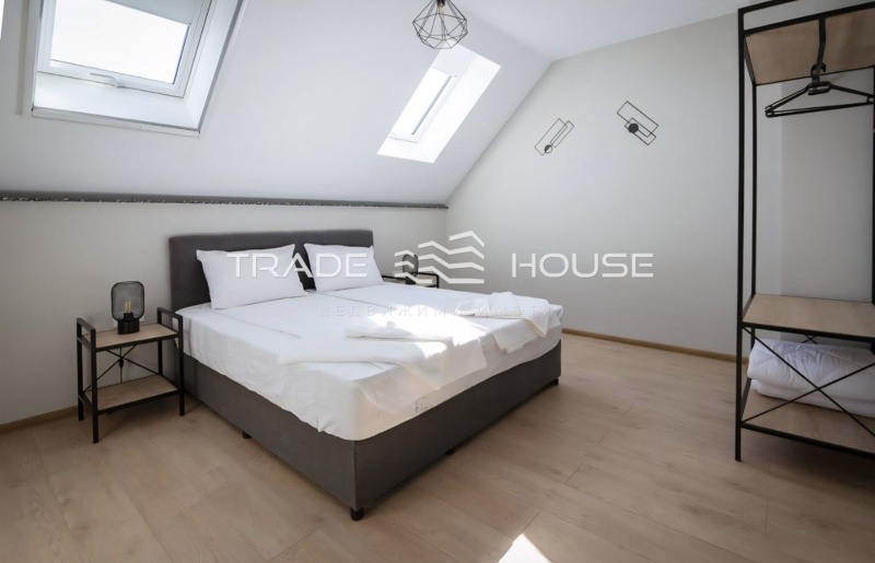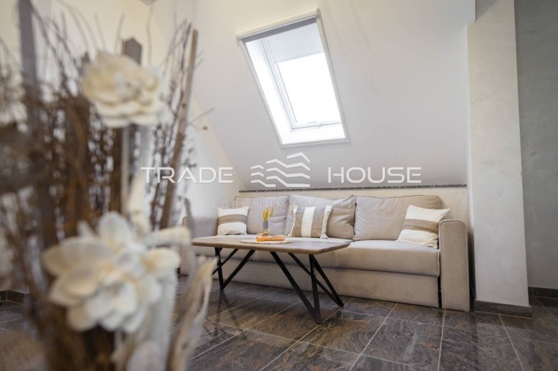 Имот 19360 Трейд Хаус предлага под наем напълно обзаведен апартамент с две спални, разположени на последен (5-ти) етаж в новопостроена жилищна сграда на тиха и удобна локация.