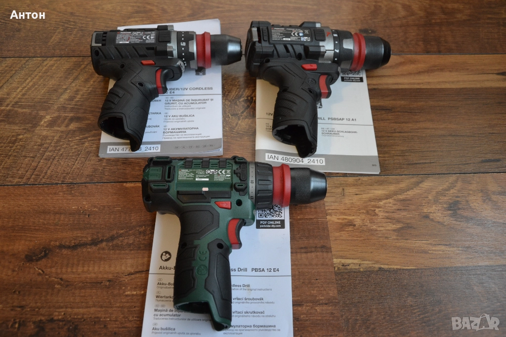 Нови, акумулаторни винтоверти Parkside 12V, всички са с свалящ се патронник(виж последната снимка).