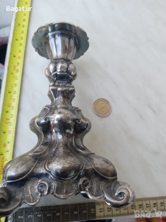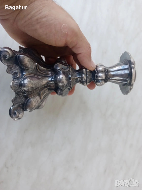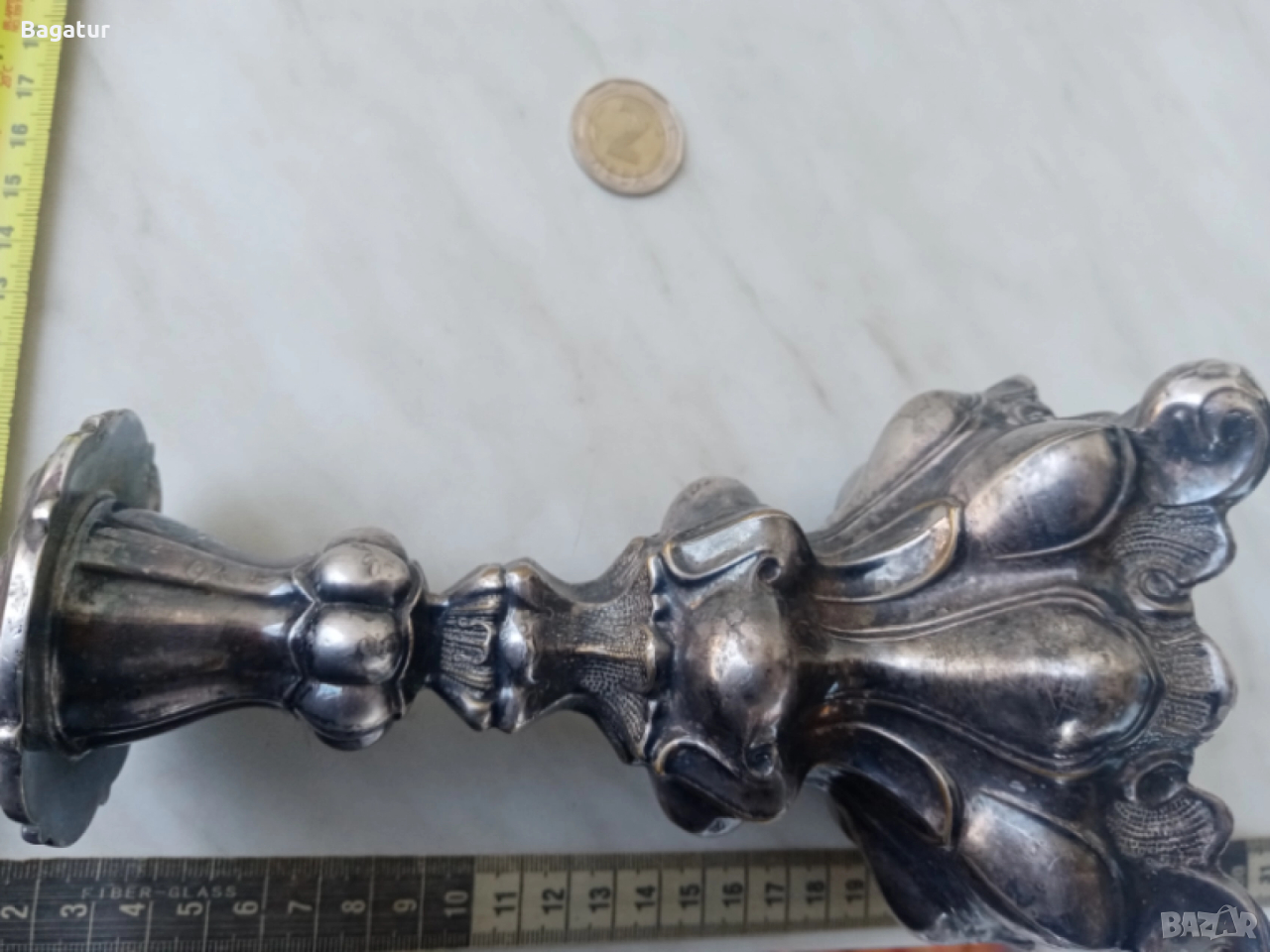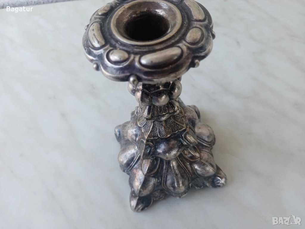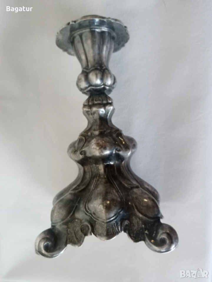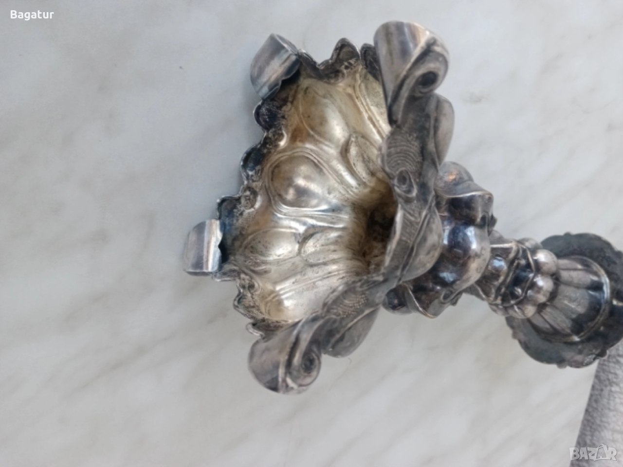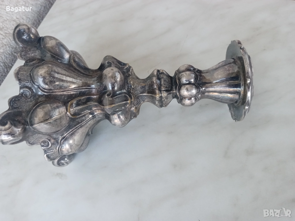 Фламандски свещник,19век,маркиран, арт нуво, посребрен, Ррр! → Обява 52525671