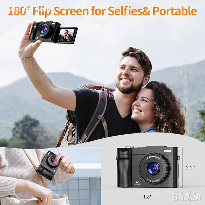 【4K 48MP камера с автофокус и 16x увеличение】Тази 4K HD цифрова камера с 16x увеличение приближава далечни пейзажи за миг, сякаш са на една ръка разстояние. Независимо дали става въпрос за далечна планина, езеро или вълнуващ момент на сцената, лесно е да го заснемете, без да пропуснете нито един детайл.