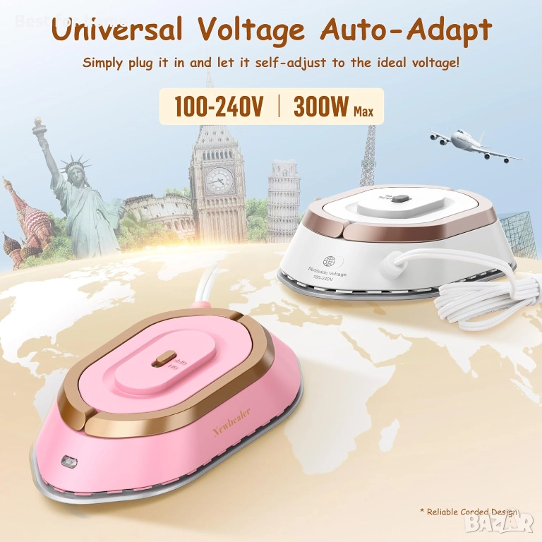 Пътна ютия Newbealer с двойно напрежение - 120V/220V (без пара)