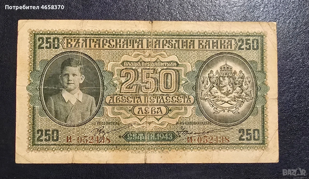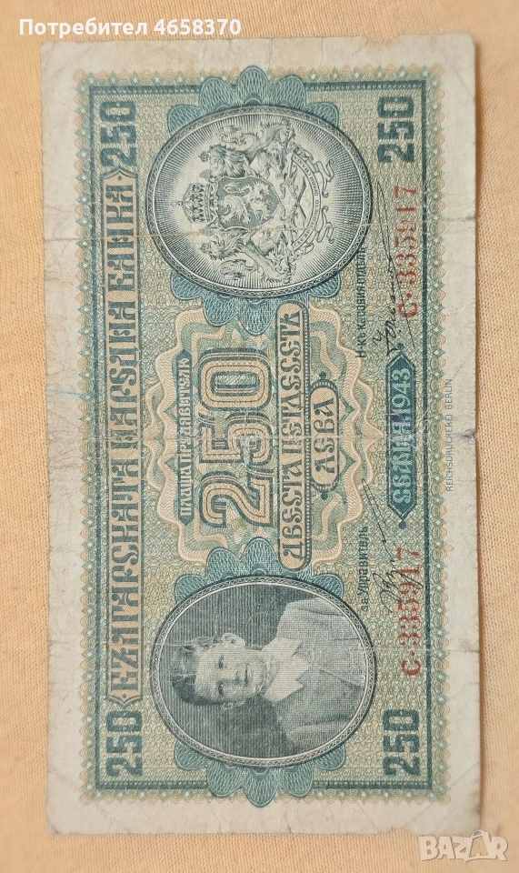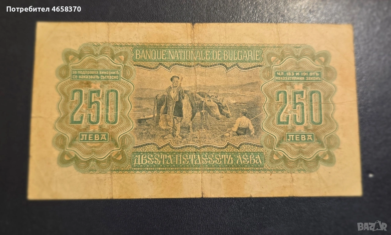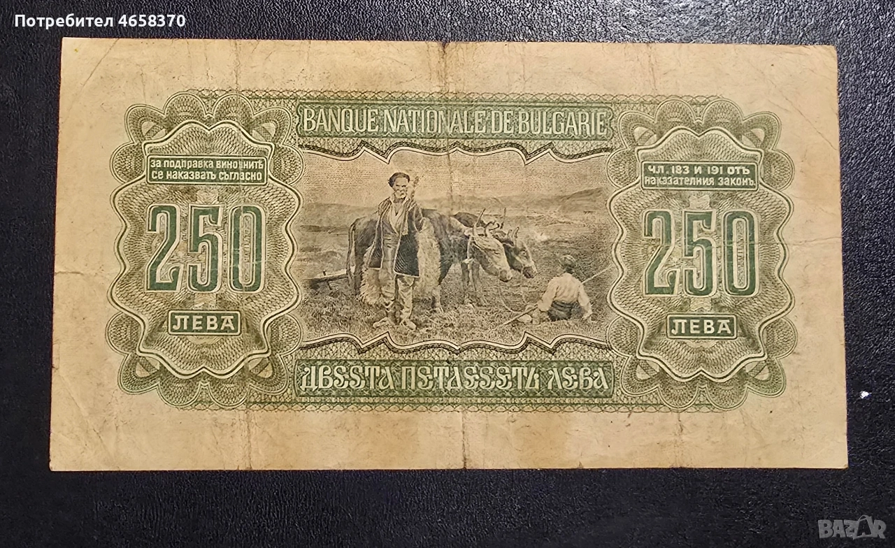Царство България - 250 лева 1943 година → Обява 52526068