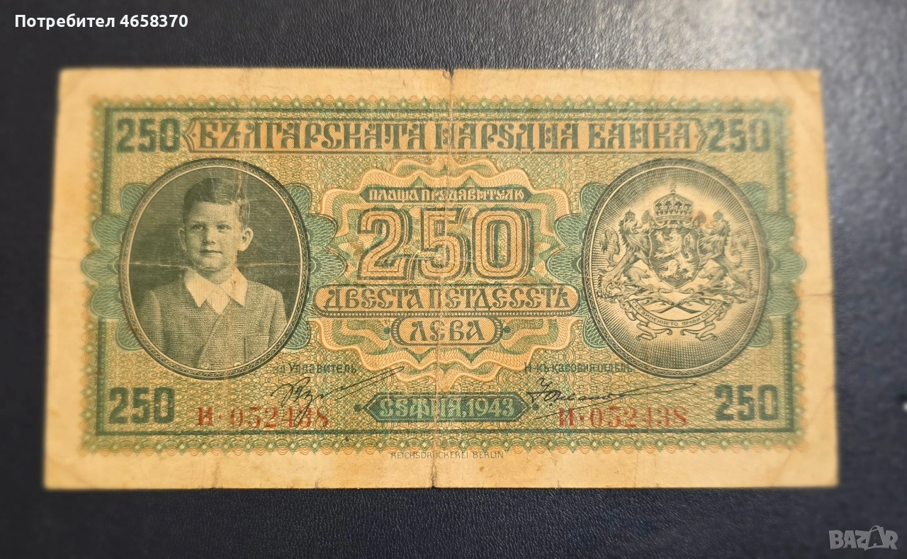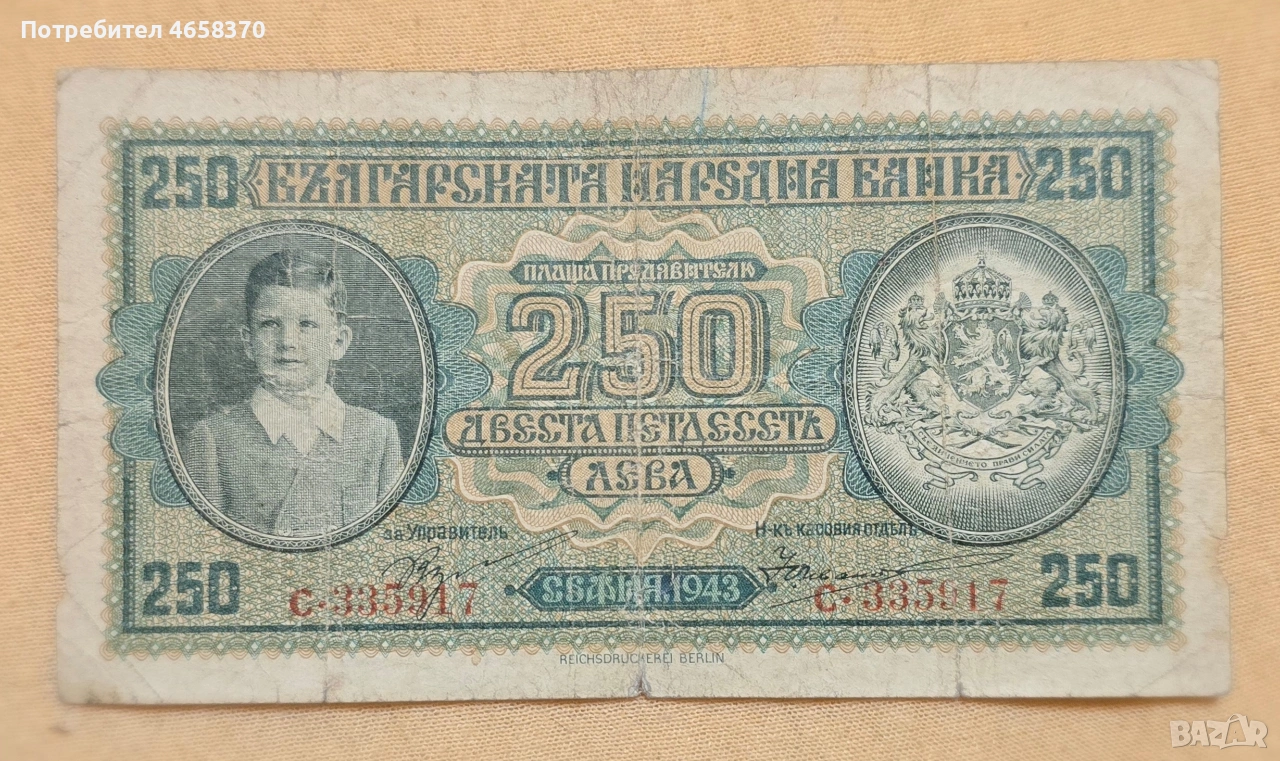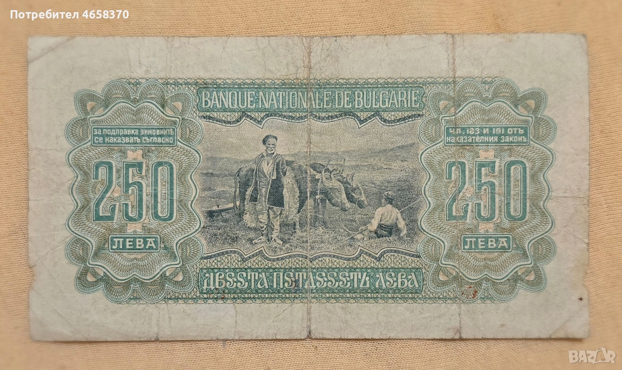 Царство България - 250 лева 1943 година → Обява 52526068