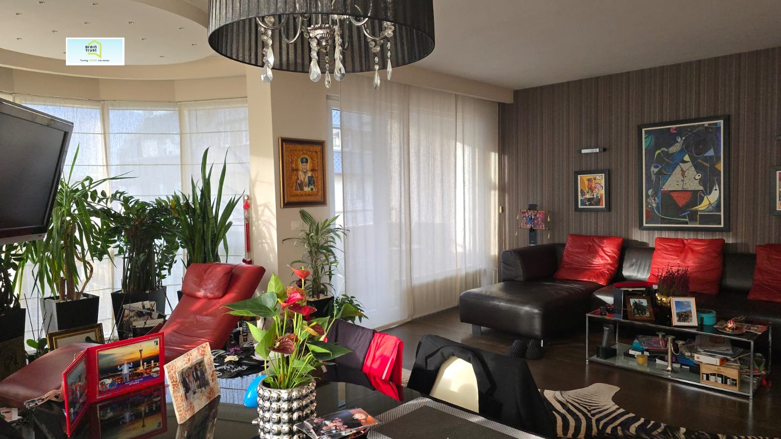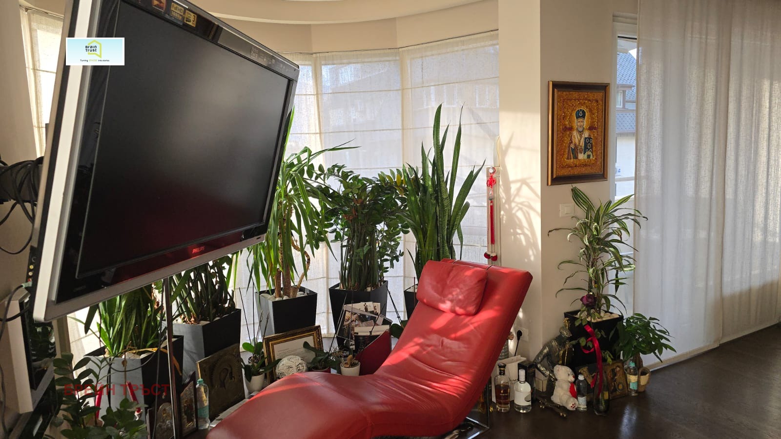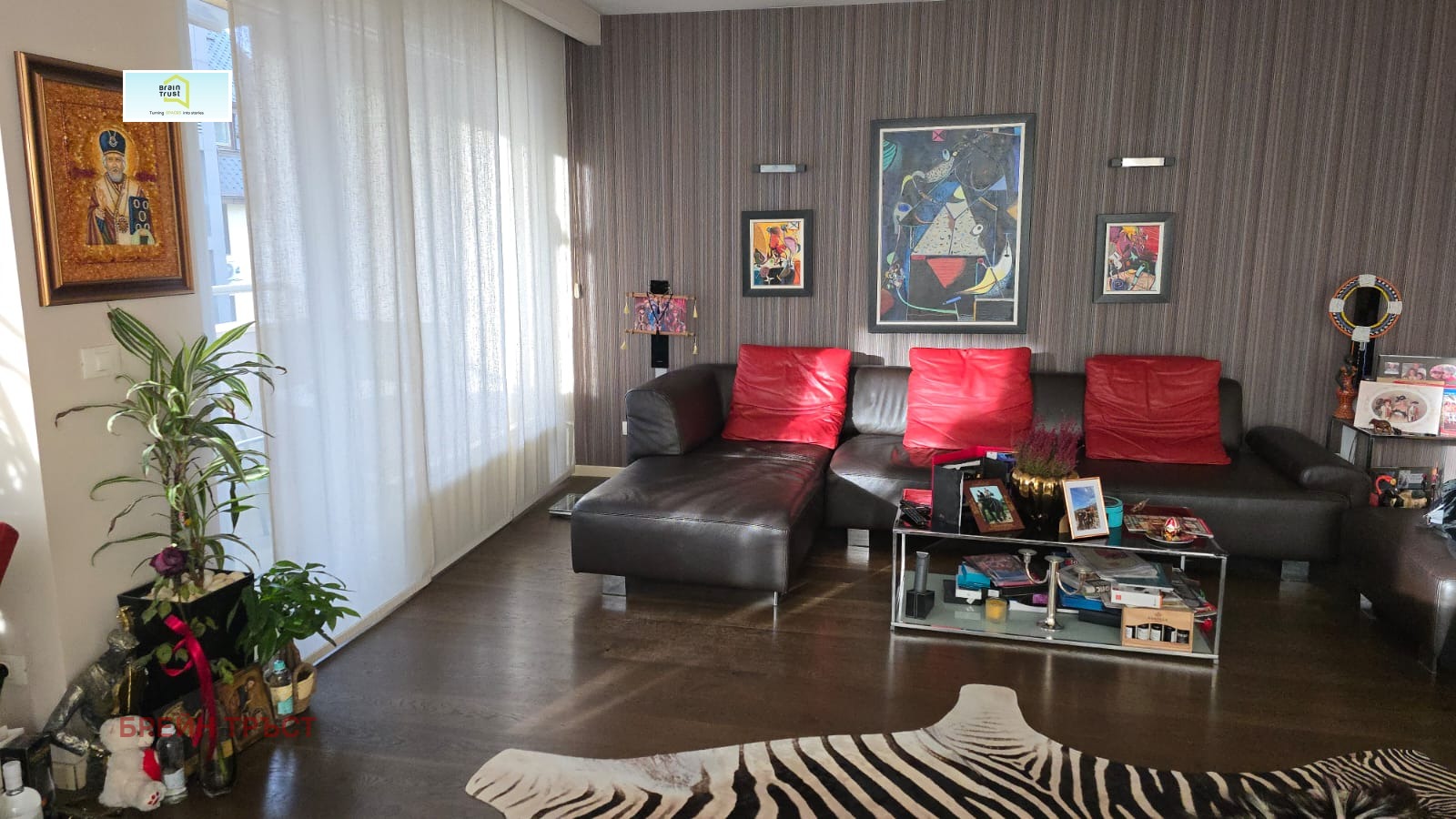 Brain Trust представя четиристаен апартамент, разположен в нова сграда с луксозни общи части в престижния столичен квартал Лозенец. Намира се непосредствено до метростанция Джеймс Баучер, с красиви гледки и отлично местоположение. Имотът е разположен на пети етаж, с асансьор и се състои от просторна дневна с трапезария и кухненски бокс, три спални, дрешник, две бани с тоалетни, перално помещение и две тераси. Предлага се напълно обзаведен. Чистата площ на жилището е 135.50 кв.м.