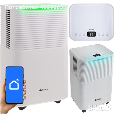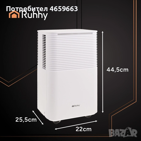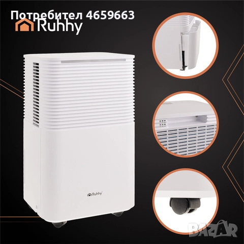 Влагоабсорбатор RUHHY Това е истинска мощна машина, идеална за големи помещения с площ около 30 м². Благодарение на автоматичния режим, таймера и Wi-Fi управлението, можете без усилие да поддържате оптимални нива на влажност . Тиха работа (38 dB), компактни размери и функции като автоматично размразяване правят това устройство подходящо за спални, мазета и помощни помещения.