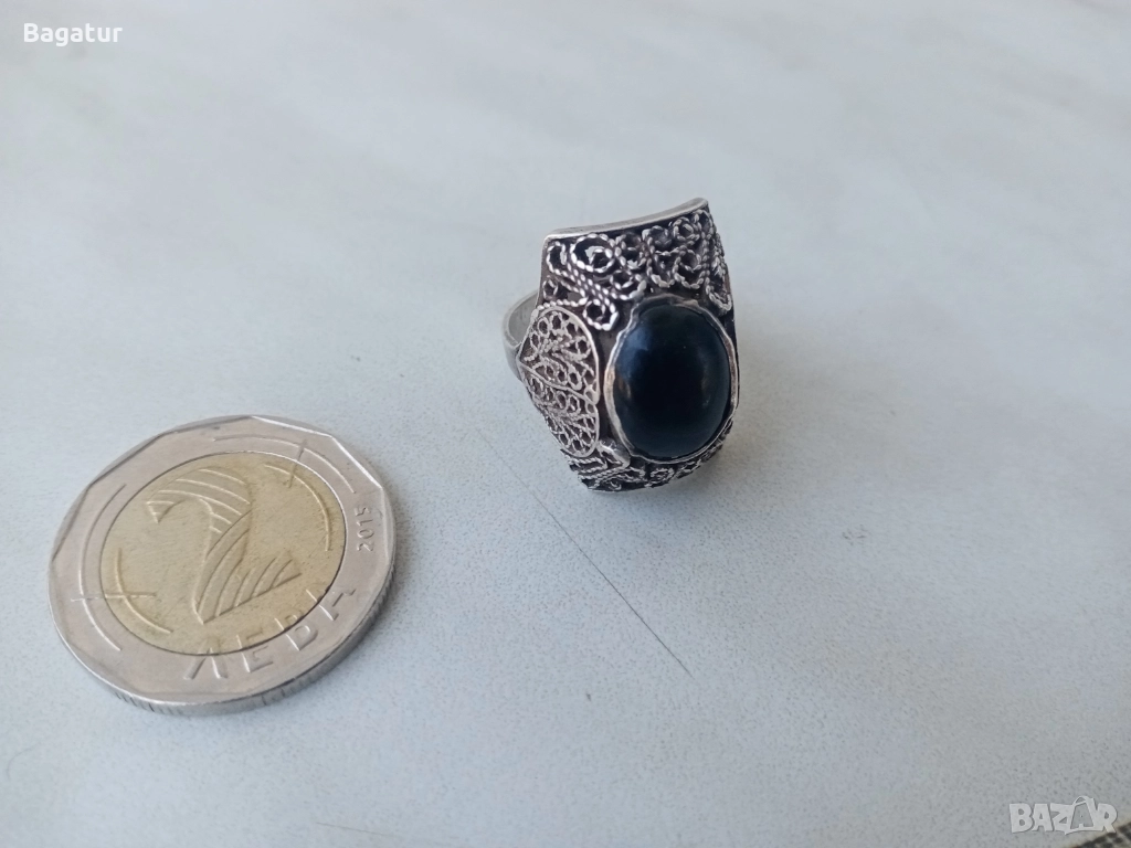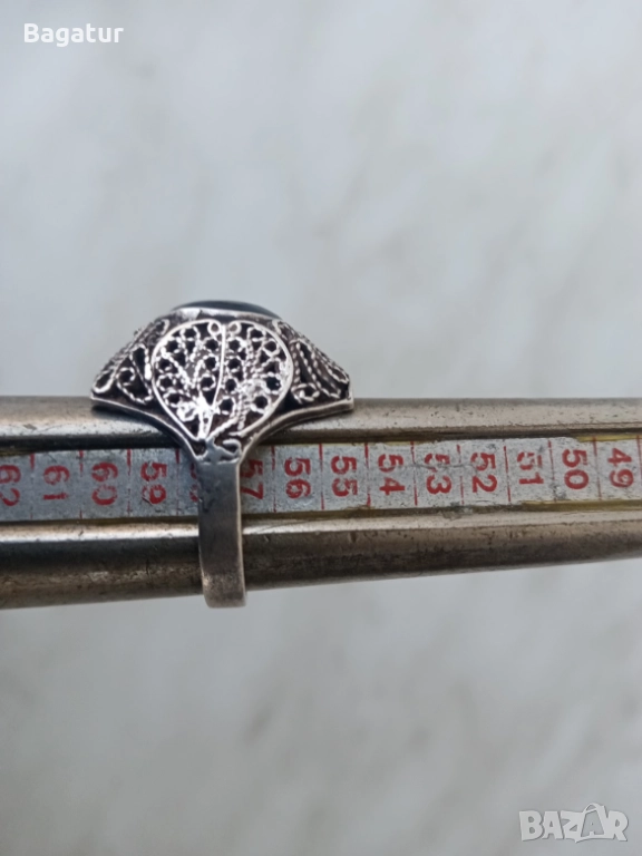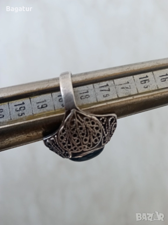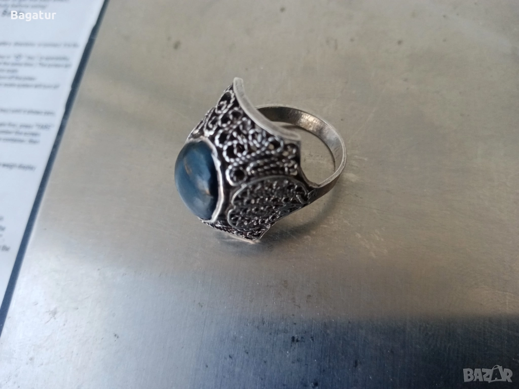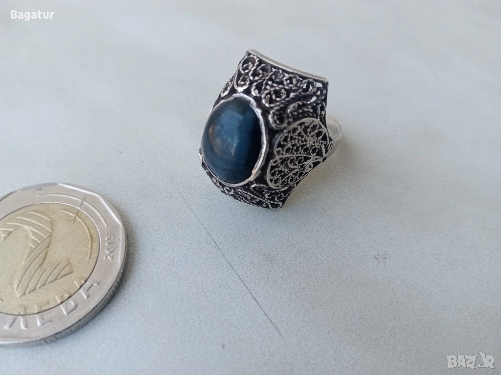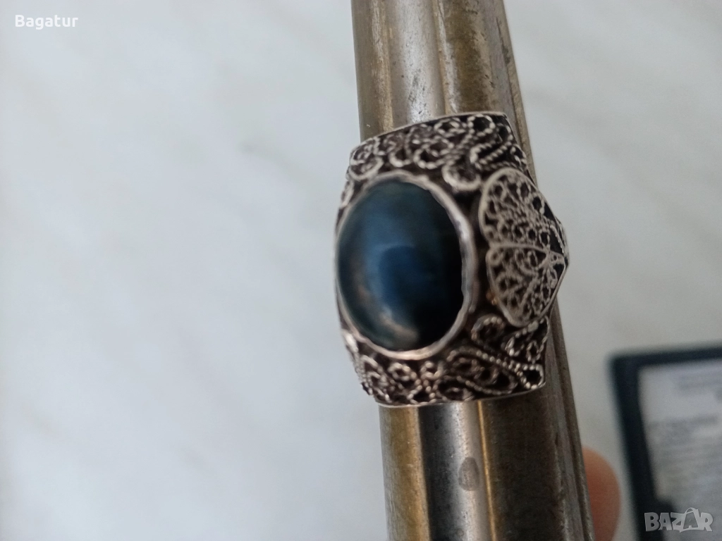 Пръстен с котешко око,сребро,филигран ажур → Обява 52526340