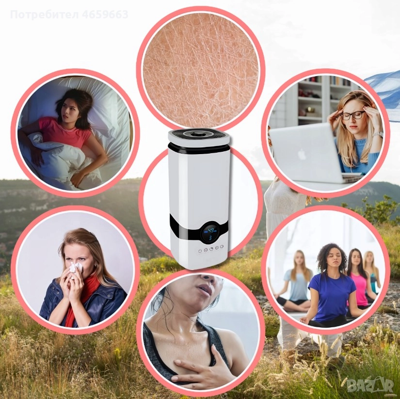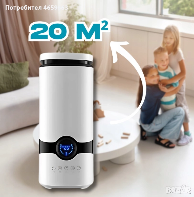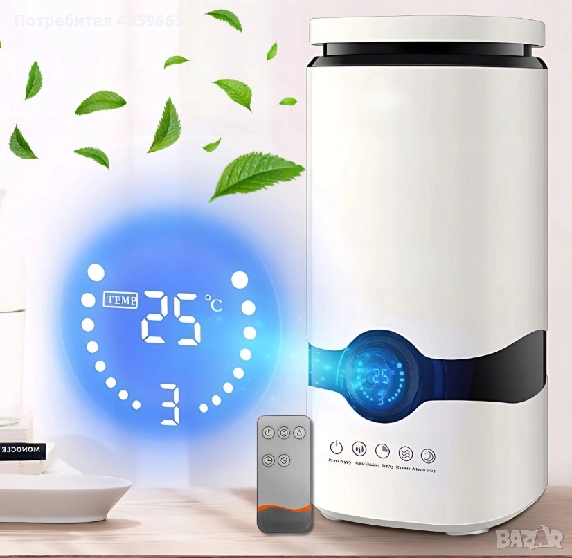 Ултразвуковият овлажнител генерира сигнал с честота от милиони пъти в секунда. Мъглата се смесва с въздуха, за да се постигне равномерно овлажняване. Цифровият овлажнител ще ви помогне да елиминирате сухия въздух в дома или офиса си. Недостатъчната влажност под 30% води до по-бързо изсушаване на лигавиците, което води до кожни проблеми, алергии и респираторни проблеми. Влажността в стаята може да спадне през есента и зимата, когато отоплителният сезон е в разгара си, а също и през лятото, когато температурите са високи. Цифрово контролираният овлажнител е идеалното решение на проблема със сухия въздух. Това устройство произвежда хладна мъгла, която повишава нивото на влажност дори в голяма стая. Овлажнителят на въздуха с функция за йонизация е също отлично устройство за борба с вредните положителни йони, произвеждани от електрическите уреди .