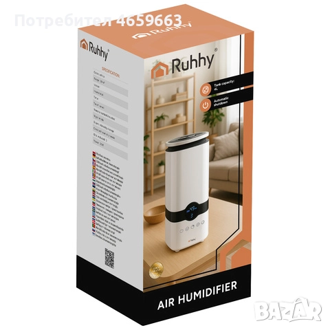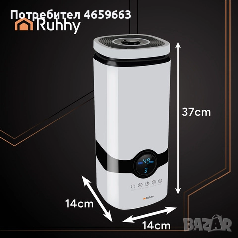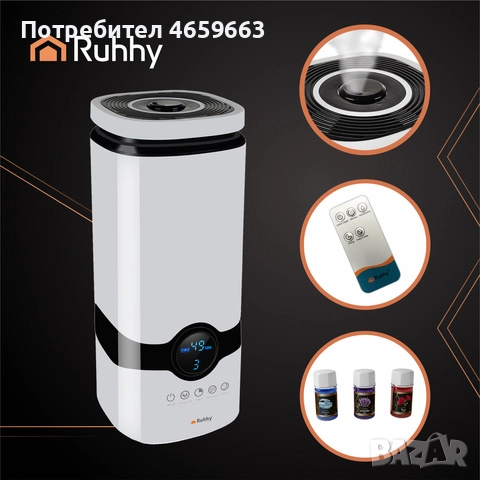 Ултразвуков овлажнител на въздуха с йонизация и ароматерапия Ruhhy, автоматичен