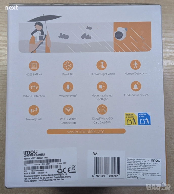 Висок клас външна Wi-Fi камера IMOU Cruiser 2 8MP/4К ,– идеална за наблюдение на двор, вход, паркинг, офис или къща. Със страхотна резолюция, интелигентни функции и защита за външна употреба.