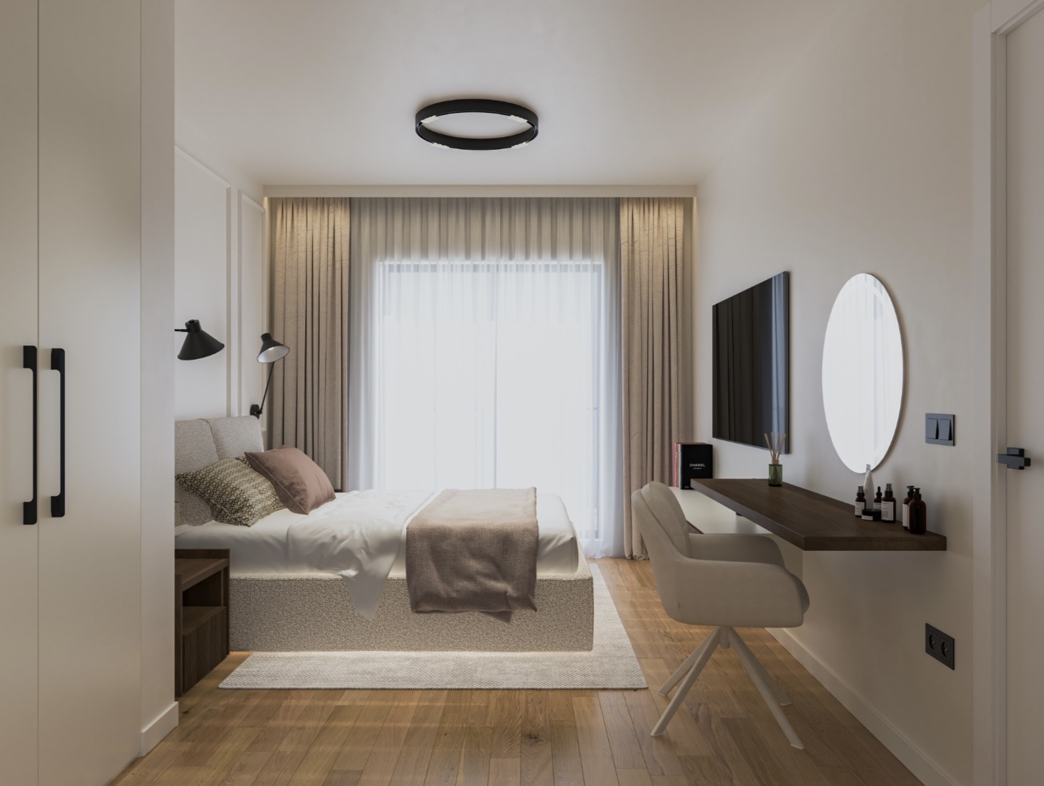 В опцията напълно завършен са включени дизайнерски мебели Kave Home, както и изработени по поръчка за пълна функционалност.