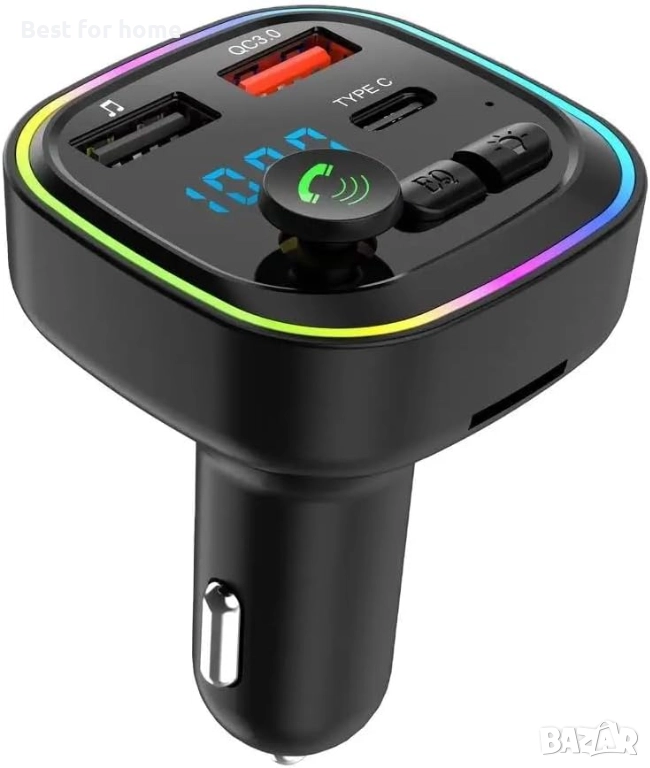 【2 USB порта и бързо зареждане】- FM предавател за кола. Този Bluetooth FM предавател за кола е оборудван с два USB порта за зареждане (5V-3A и 5V-1A), QC 3.0 порт за бързо зареждане до 20W, както и Type-C порт за зареждане. Той е в състояние да зарежда две устройства едновременно бързо и ефективно, осигурявайки 80% по-бърза скорост на зареждане от нормалното. Освен това ви позволява да слушате любимите си песни от мобилния си телефон, като ги стриймвате чрез Bluetooth, или от Micro SD карта или USB устройство.