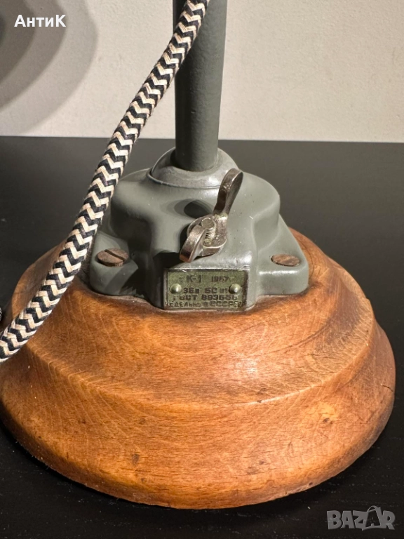 Отлично, работещо състояние! Плафонът е емайлиран. Щепселът се по-стар съветски стандарт и не става за повечето контакти (нуждае се от преработка или смяна).