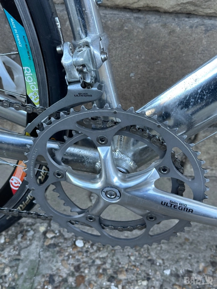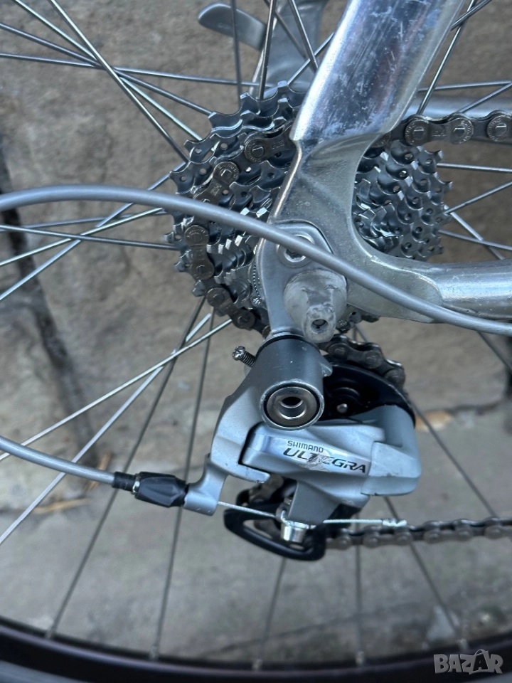 Целият монтаж на велосипеда е Shimano Ultegra 6500,само задният дерайльор е Ultegra 6700.