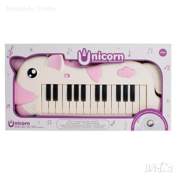 Детска йоника във формата на Еднорог с 25 магически клавиша и 25 песнички и светлина, с меки светлини за магическа игра.