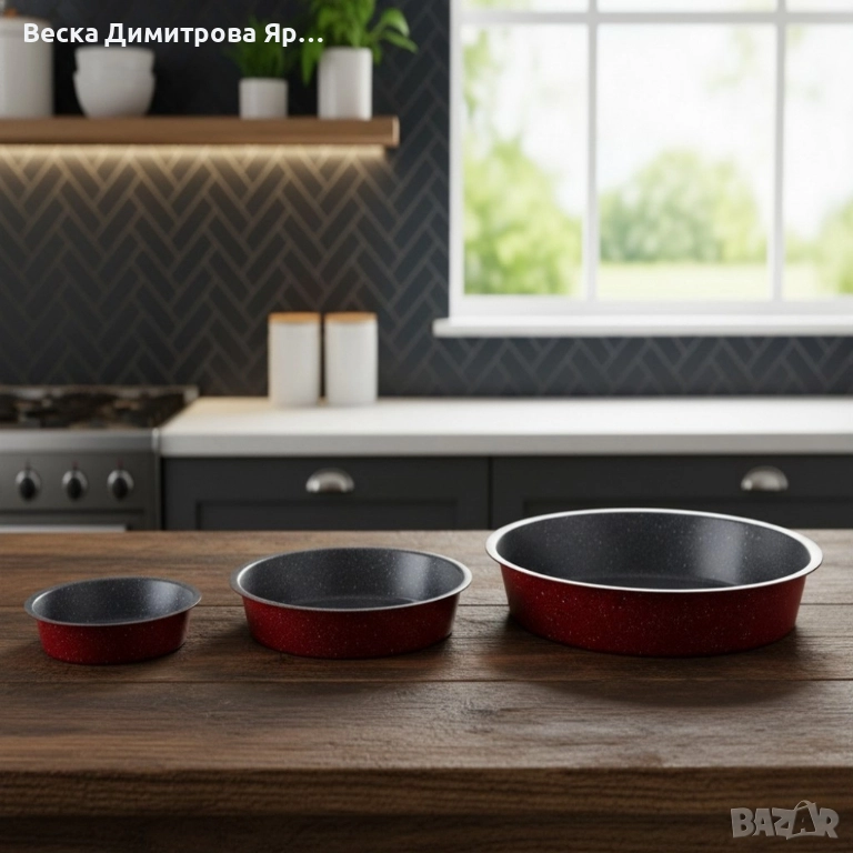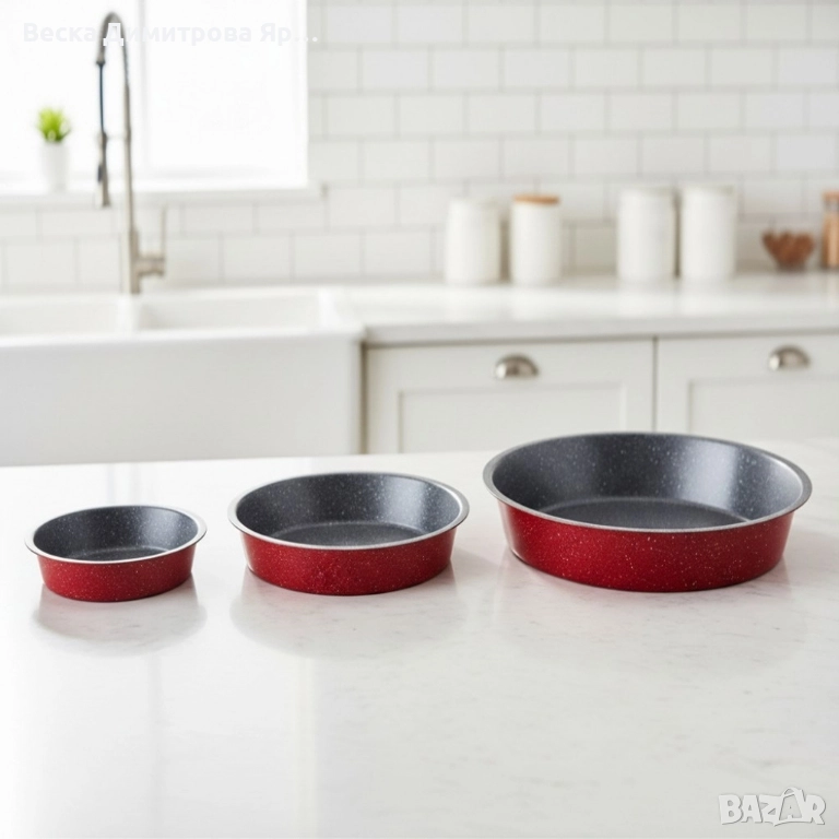 Комплектът включва 24×4.5 см, 28×4.5 см и 32×4.5 см. Подходящи за фурна и съдомиялна, пестят енергия и време. Добави ги към кухнята си и усети разликата още при следващото печене.