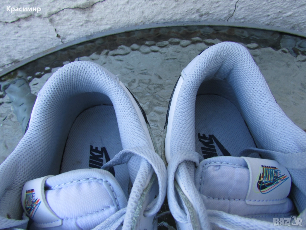 Мъжки маратонки Nike Dunk Low 3D Swoosh, в двуцветен дизайн, излъчващ стил и елегантност и многоцветки припокриващи се емблеми Nike Swooshes. Имат кожена горна част с бял основен слой, с перфорация отпред на пръстите, в контраст със сиви наслагвания върху него. С мека подплата за комфорт, междинна подметка от пяна за меко и отзивчиво омекотяване и гумена подметка с класически кръгови обръчи, шита по цялата дължина за повече издръжливост и сцепление. Номер 42 с дължина на стелката 26,5 см. Произведени в Индонезия.