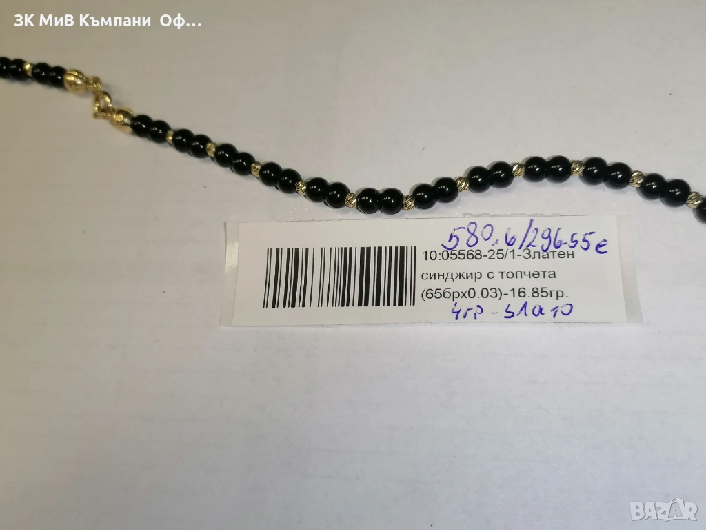 Златно колие с черни мъниста и златни топчета - 16.85 грама - 4 грама злато