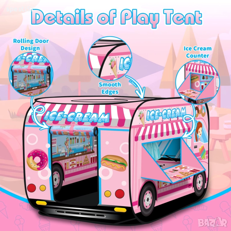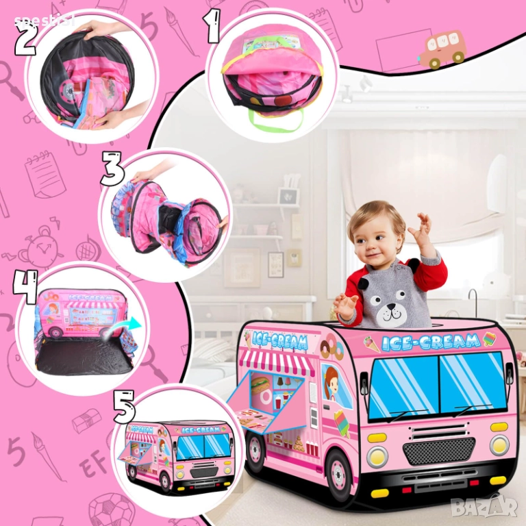 1 х Сгъваема детска палатка "Камион за сладолед"