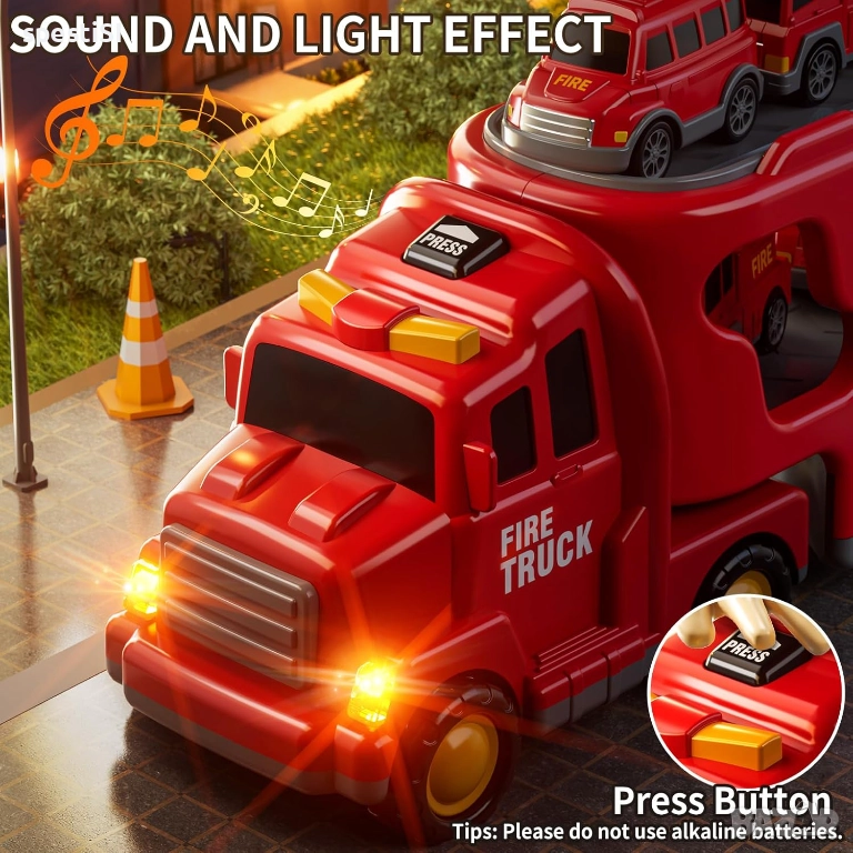 Пригответе се за екшън и приключения в детската стая! Този впечатляващ комплект не е просто играчка, а цяла мобилна пожарна станция. Големият камион впечатлява със своя мащаб и функционален дизайн, позволяващ на децата да транспортират целия си спасителен екип до мястото на въображаемия пожар. Вградените бутони на кабината активира реалистични звуци на запалване на двигател и аварийни сирени, придружени от мигащи светлини, което мигновено грабва детското внимание.